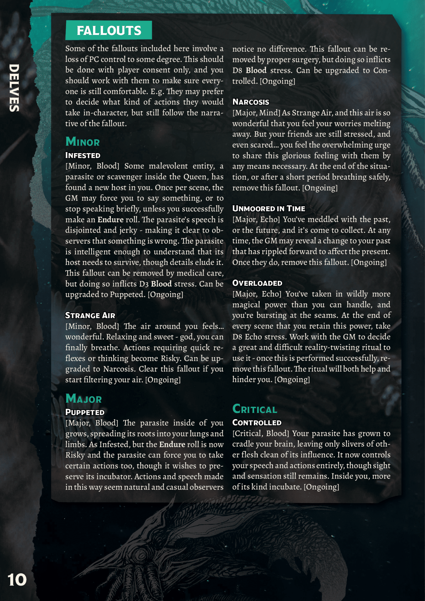 Using the Resistance System first developed in Spire: The City Must Fall, Heart focuses on what player characters have to lose in pursuit of their goals whether that’s supplies, friends, sanity, blood, a way home, or spatial or bodily integrity. Anything is up for grabs.